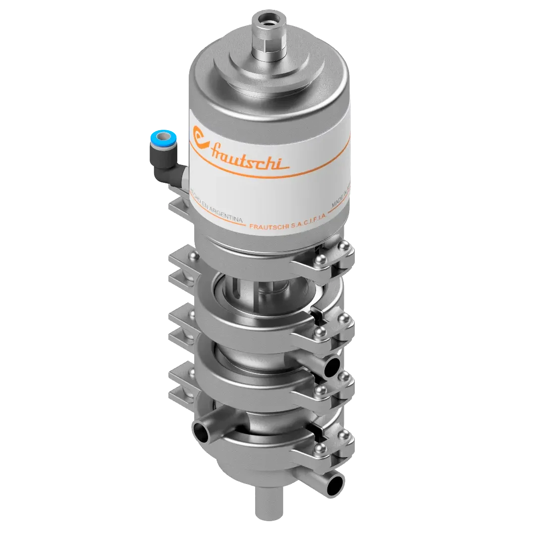 VALVULA ELEVACION HIGIENICA de DESVIO SIMPLE con TESTIGO de FUGA y ACTUADOR NEUMATICO